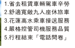 *本團隊嚴禁:抽煙、吃檳榔、剝皮購物、遲到早退、、,改變昔日花蓮包車的不良印象